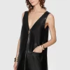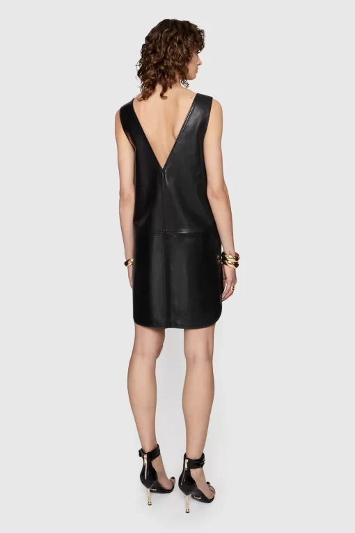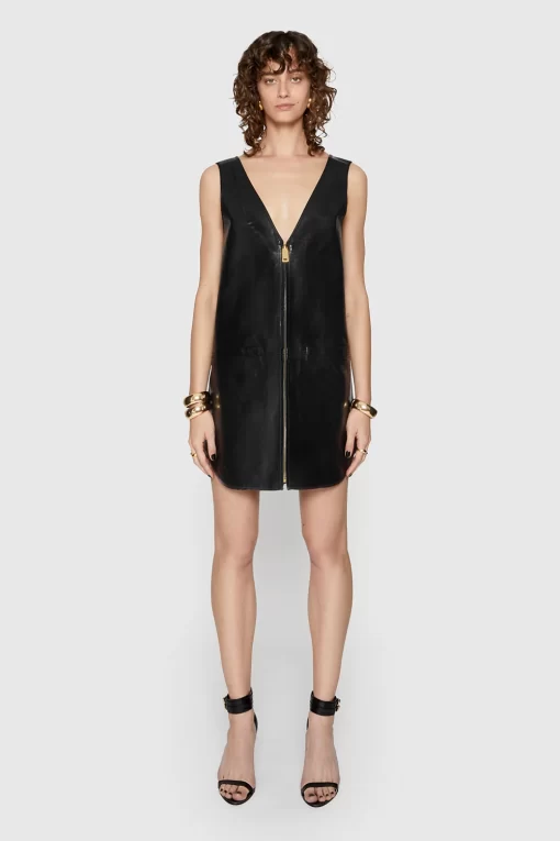 The Adrian Dress will have all eyes on you. Crafted from luxurious leather, this sleek design features a deep V-neckline that adds a touch of allure, along with front pockets and a bold zipper front.