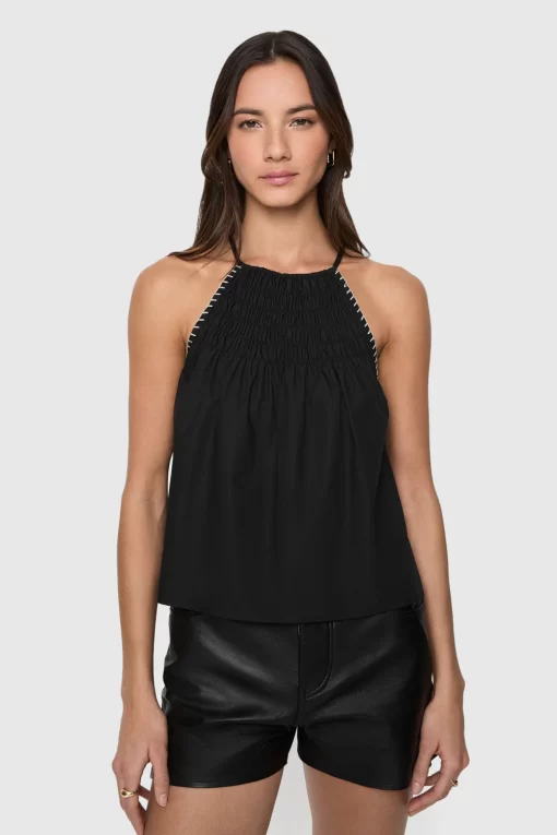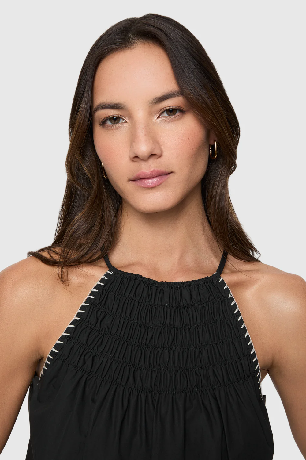 The Cassie Smocked Top is a sleeveless, cotton design with contrasted whipstitch detailing at the armholes, offering a relaxed and breathable fit. Beat the heat in style with this effortlessly comfortable piece, perfect for those warm, sunny days.