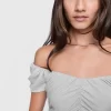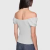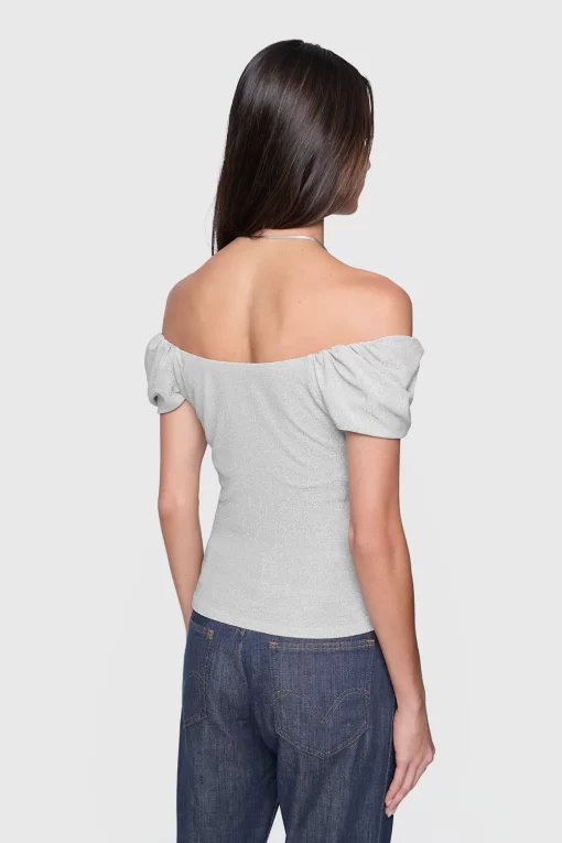The Devin Off Shoulder Top brings a touch of casual romance with its off-shoulder design and ruched details. The fitted metallic knit adds a hint of shimmer for effortless charm and classic style.