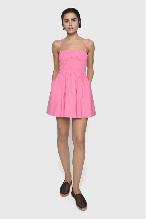 The Fay Smocked Dress is a breezy cotton poplin mini, perfect for summer with its flattering smocked bodice and delicate chain straps. Its lightweight fabric and relaxed fit make it an easy, elevated choice for warm-weather days.