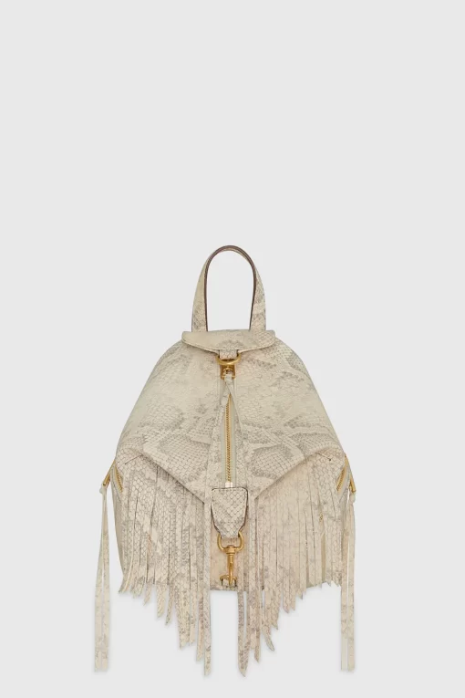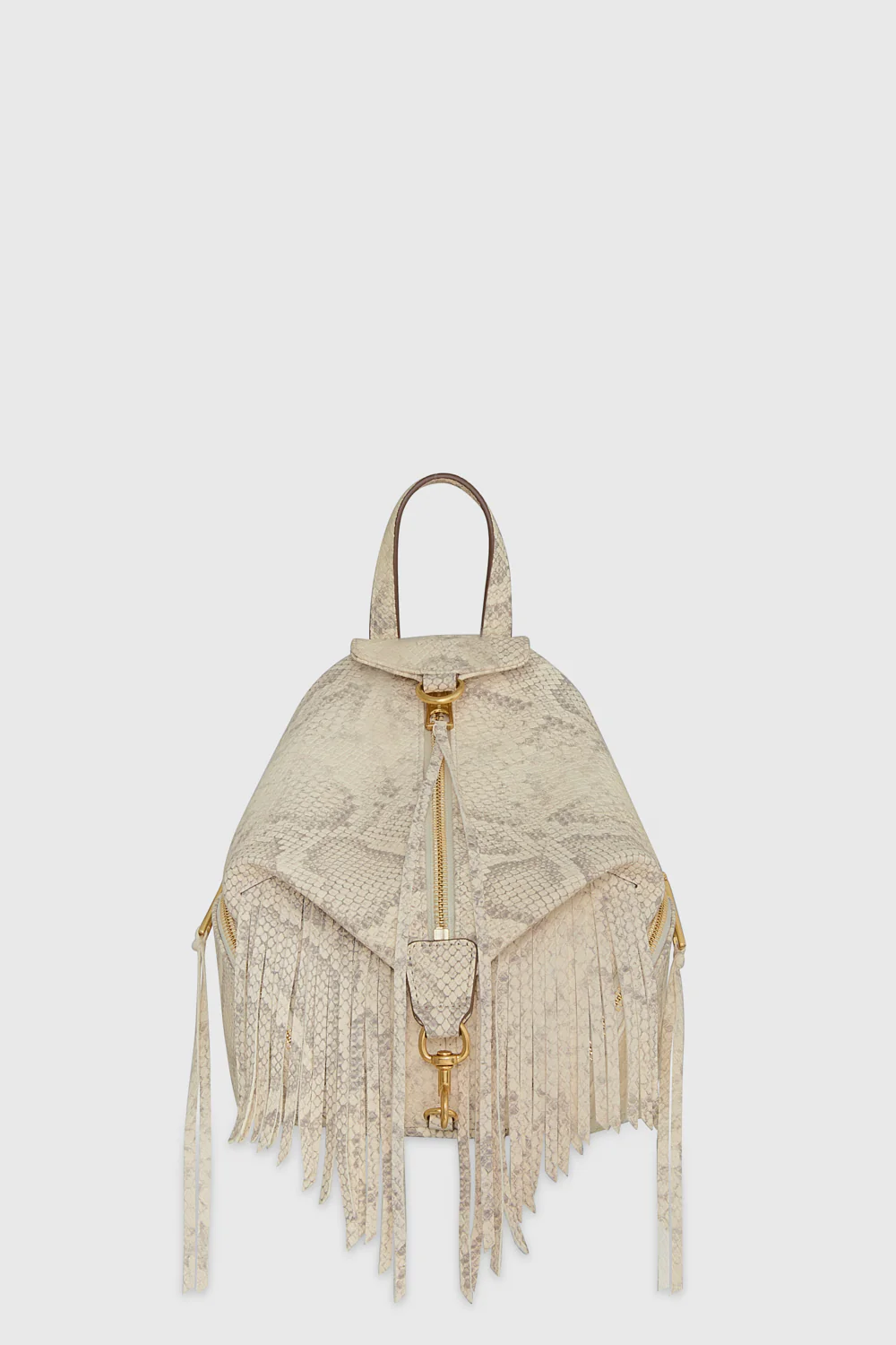 Stand out wherever you go with bohemian-inspired fringe and striking antique brass hardware. Beautifully crafted from ultra-soft leather with a natural colored snake print, the Convertible Mini Julian Backpack features adjustable straps and multiple pockets for stowing your essentials.