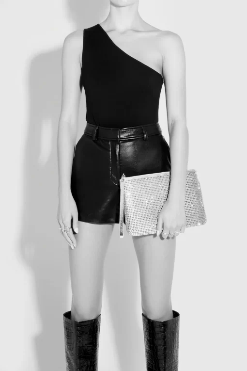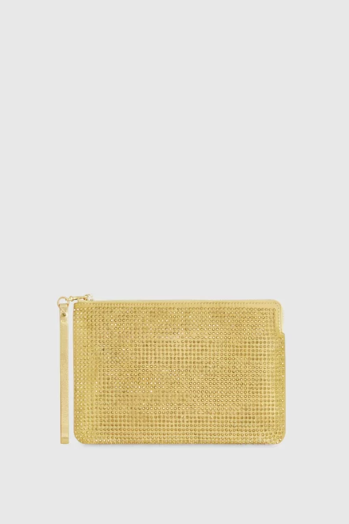 Our Crystal Studded Wristlet, a statement piece that captures the essence of luxury and refinement. Elevate your style and make a lasting impression with this exquisite accessory.