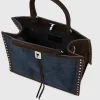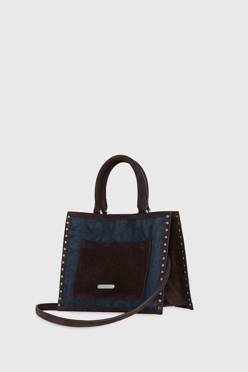 She’s the smaller version of our spacious Darren Tote. Made from denim and suede and punctuated with dainty studs along the sides. She’s perfect for day-to-day city adventures.