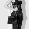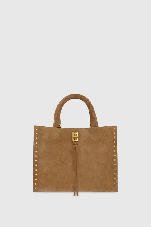 Compact yet functional, the Darren Small Tote is designed for effortless sophistication. Crafted from soft suede, it features subtle stud detailing, a structured silhouette, and an open turn-lock closure. Perfect for carrying essentials, this tote transitions seamlessly from day to night.
