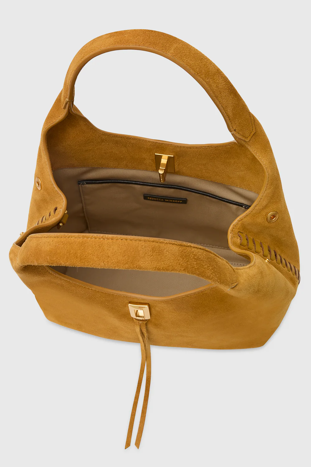 It’s the newest and smaller version of our best selling Darren Carryall, The Darren Carrysome! This bag is perfect for carrying all of your daily essentials. Crafted with soft suede leather, whipstitch details, antique brass hardware, and a detachable crossbody strap – you’re going to want to carry her everywhere.