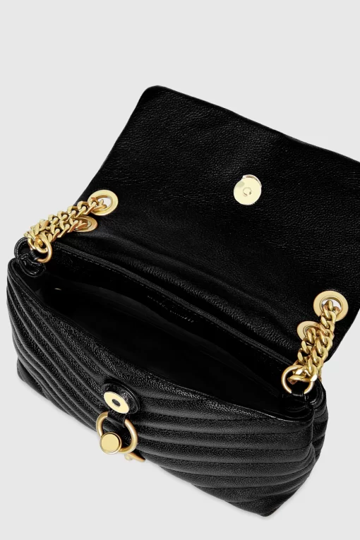 Designed to keep up with the busiest of days, the Edie Crossbody will hold all your daily necessities while still looking chic. Made from smooth leather in black, this versatile companion features Antique Brass hardware, a pull-through chain link strap, and a dog clip to keep your essentials secure.