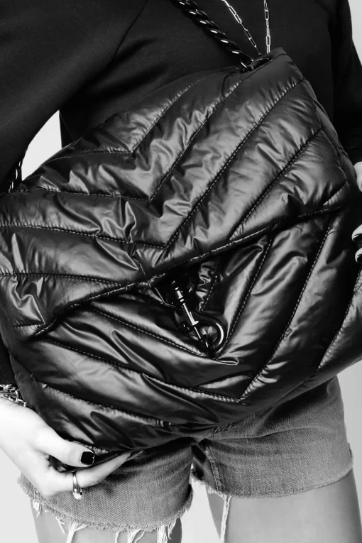 The Edie Nylon XL Shoulder Bag makes the perfect roomy, everyday companion. This versatile bag is designed with a pull-through chain shoulder strap, black shellac hardware, and a back exterior pocket that’s perfect for slipping your phone into.