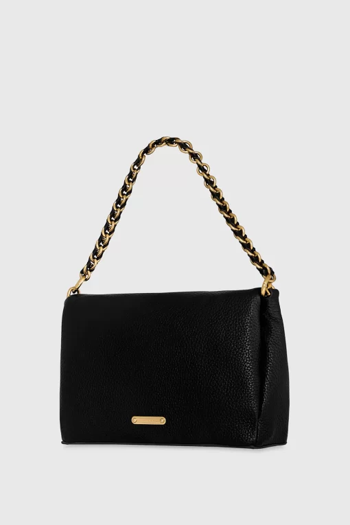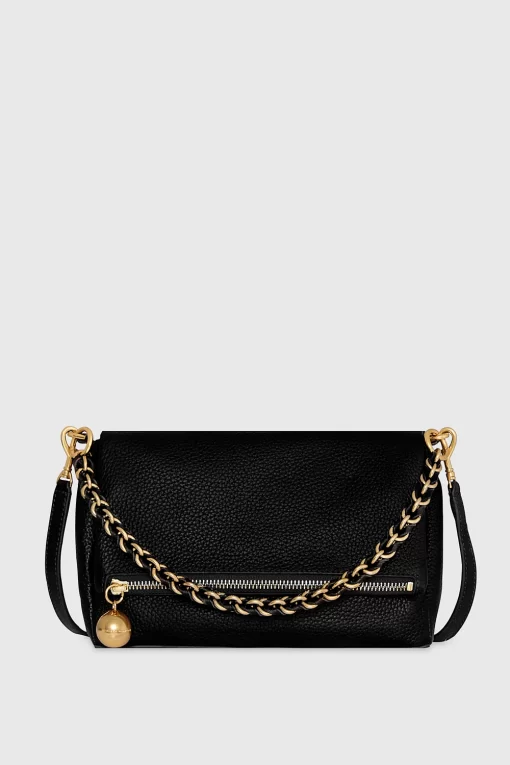 A classic gets a bold update. The Foldover Crossbody features a sleek foldover flap accented with a polished curb chain detail and a dangling studded zipper charm. Crafted from supple leather, it includes a top zip closure and adjustable crossbody strap for versatile wear.