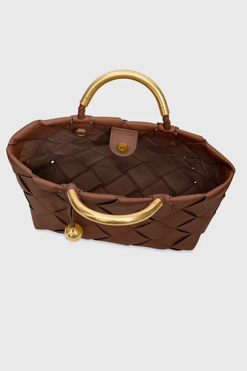 A mini bag that makes a major impact. The Frankie Woven Mini Tote is crafted from rich handwoven leather with a structured top handle and optional crossbody strap. Antique brass detailing and our signature charm finish off this versatile silhouette with personality.
