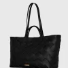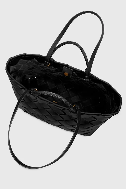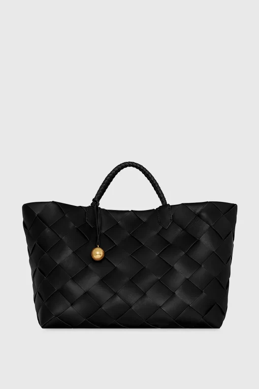 A relaxed silhouette meets rich texture in the Frankie Woven Tote. Designed with handwoven leather and soft knotted handles, this spacious carryall delivers easygoing elegance from weekday errands to weekend escapes. The signature gold D-ring charm adds a bold finish, while the unlined interior keeps things effortlessly light.