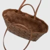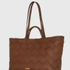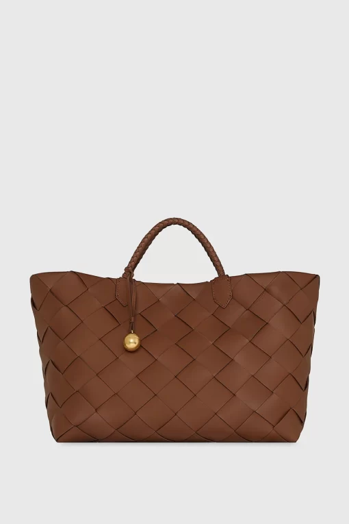 A relaxed silhouette meets rich texture in the Frankie Woven Tote. Designed with handwoven leather and soft knotted handles, this spacious carryall delivers easygoing elegance from weekday errands to weekend escapes. The signature gold D-ring charm adds a bold finish, while the unlined interior keeps things effortlessly light.