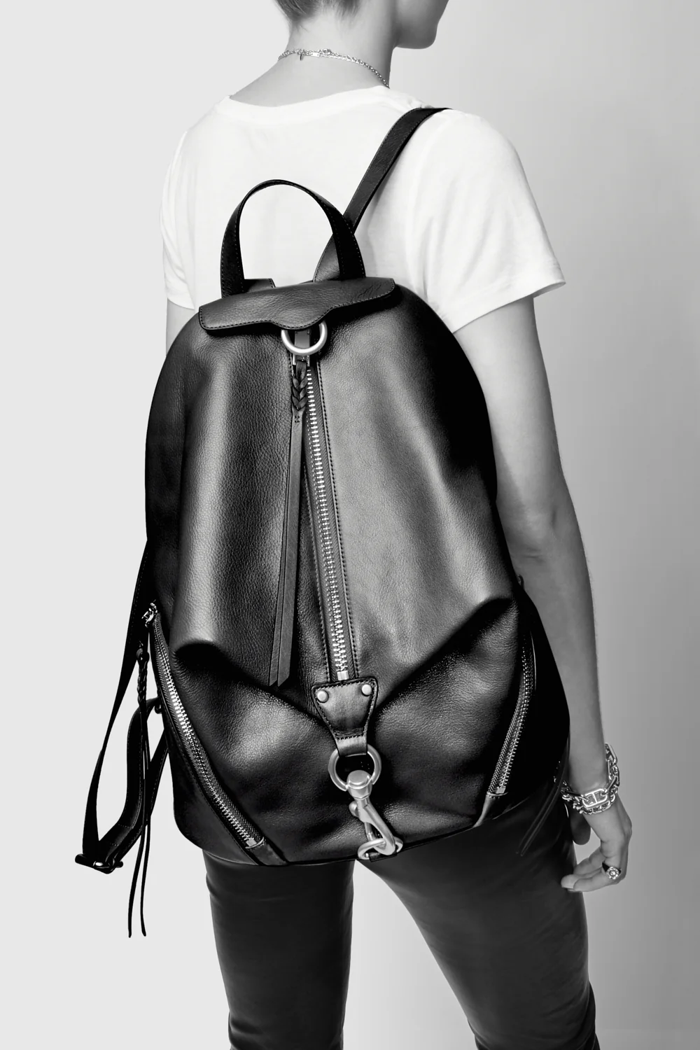 The most spacious of our Julian Backpack collection, this jumbo version is designed to keep up with the busiest of days and the longest of weekends. Complete with a front zip closure that fastens with a signature dog-clasp and multiple pockets, this versatile backpack will keep your belongings secure and your most-accessed valuables always within reach. Carefully crafted from ultra-luxe leather and accented with antique brass hardware, it’s roomy enough to fit your laptop, gym clothes, cosmetics, and lots more.