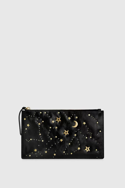 Our Large Celestial Studded Pouch seamlessly blends style and functionality. Adorned with meticulously placed celestial studs, this spacious pouch is crafted with precision, making it the perfect companion for both special occasions and everyday glamour.