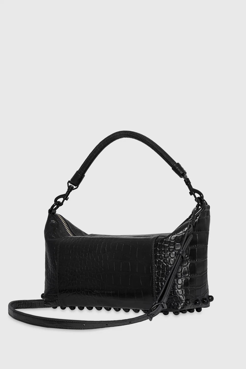 Make a bold statement with the MAB Nano Shoulder with Dome Studs. Adorned with striking dome stud detailing, this sleek bag combines edgy accents with a compact design. Perfect for day-to-night versatility, it features a zipper closure and multiple pockets for easy organization.