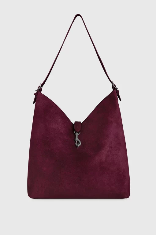 The Megan Hobo is the ideal go-to bag for those seeking effortless style and functionality. Crafted from suede leather, this spacious hobo is designed to fit all your essentials while maintaining a sleek and modern silhouette. Its magnetic snap closure and gunmetal hardware add a touch of sophistication, making it a perfect choice for everyday wear.