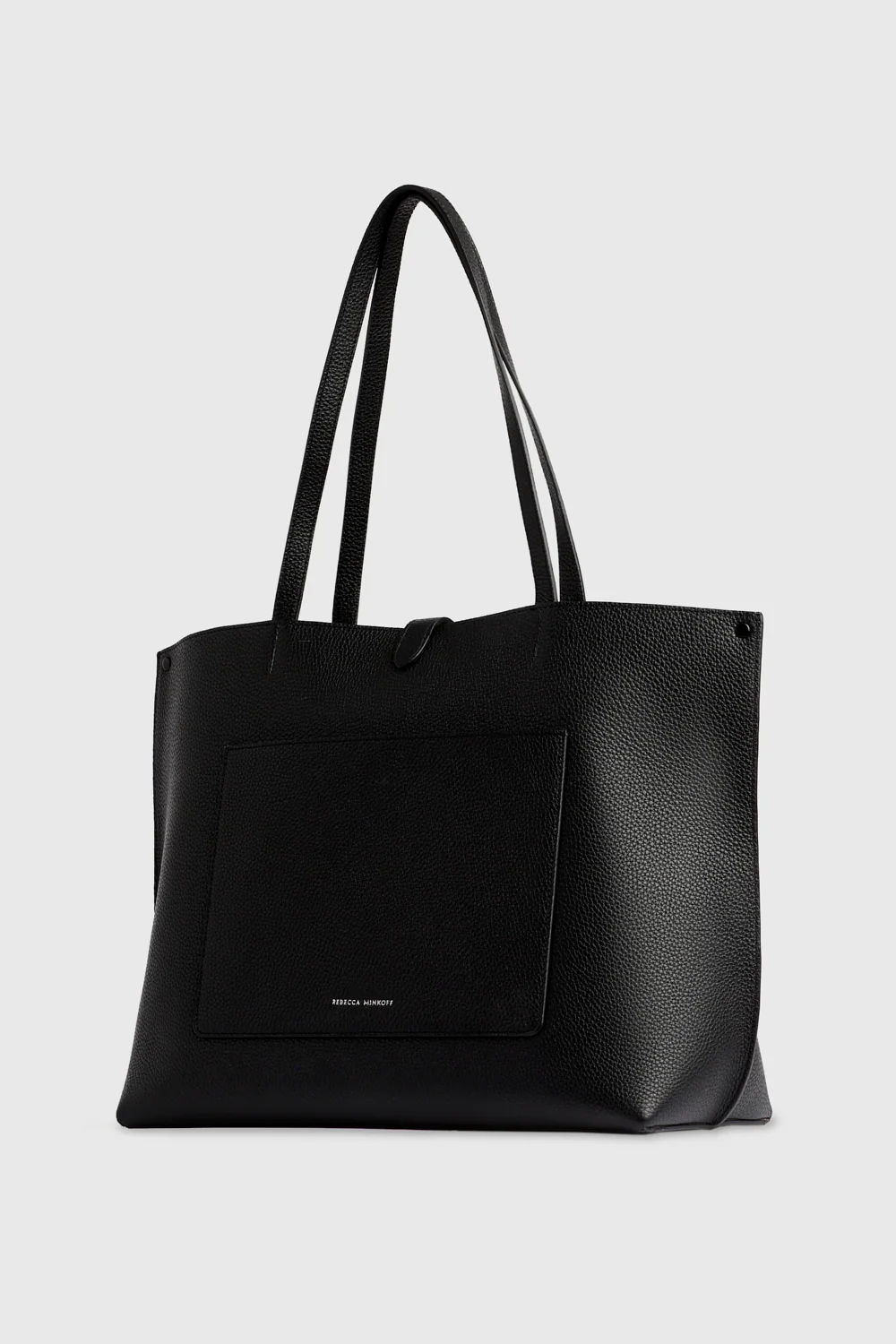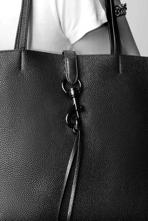 Roomy enough for even the busiest of days, Megan has a classic shopper tote silhouette that can fit your laptop, gym clothes, and much more. Made from soft pebbled leather in a black hue, it’s topped off with black shellac dog-clip hardware and features a discreet magnetic snap closure.
