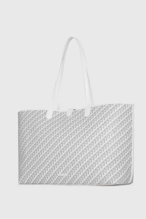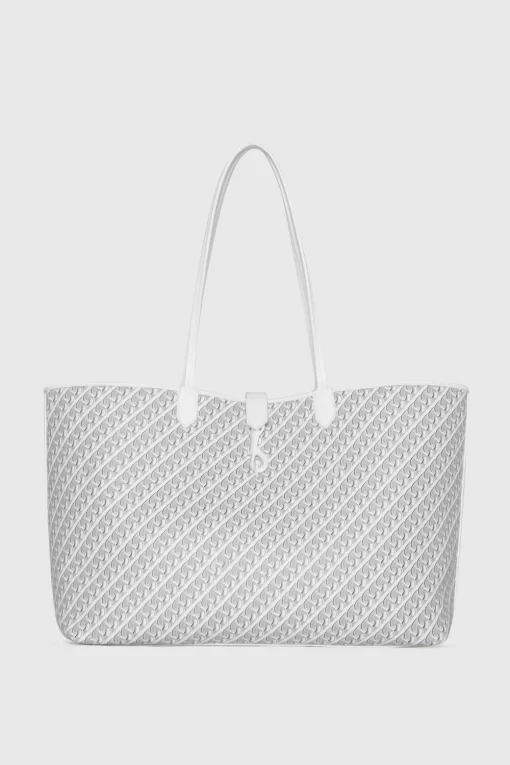 The On the Go Chain Tote is your perfect everyday companion. Crafted from durable cotton canvas, this tote offers a lightweight design with a spacious interior. Its sleek silhouette is enhanced by sturdy handheld handles and a magnetic snap closure, making it ideal for errands or casual outings.