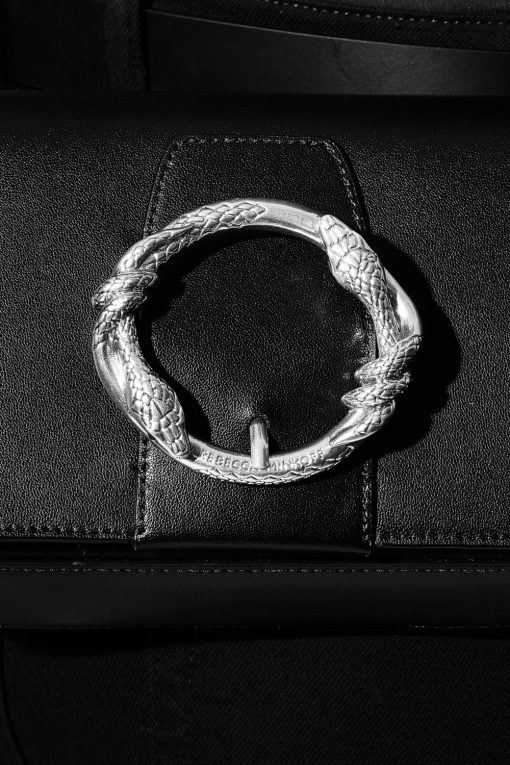 The Snake Ring Saddle Crossbody exudes sophisticated appeal in soft leather accented with striking black hardware. This compact style features a stunning snake emblem at the front, a magnetic closure, and an interior zip pocket. Place your essentials inside, and you’re ready to go.