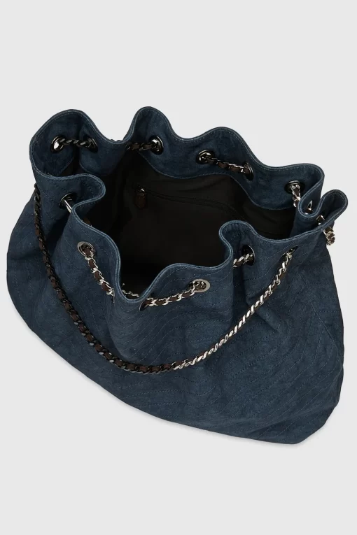 Make a bold yet relaxed statement with the Soft Tote. This slouchy carryall features a gathered silhouette with metal grommet accents and a mixed-metal chain shoulder strap for edge. Designed with a spacious interior and soft finish, it’s the perfect everyday bag with standout texture.