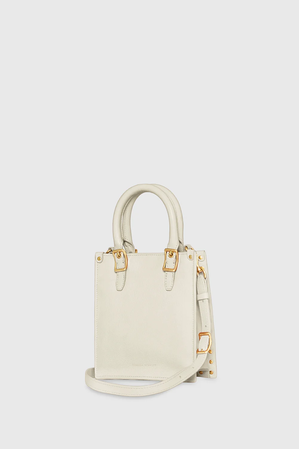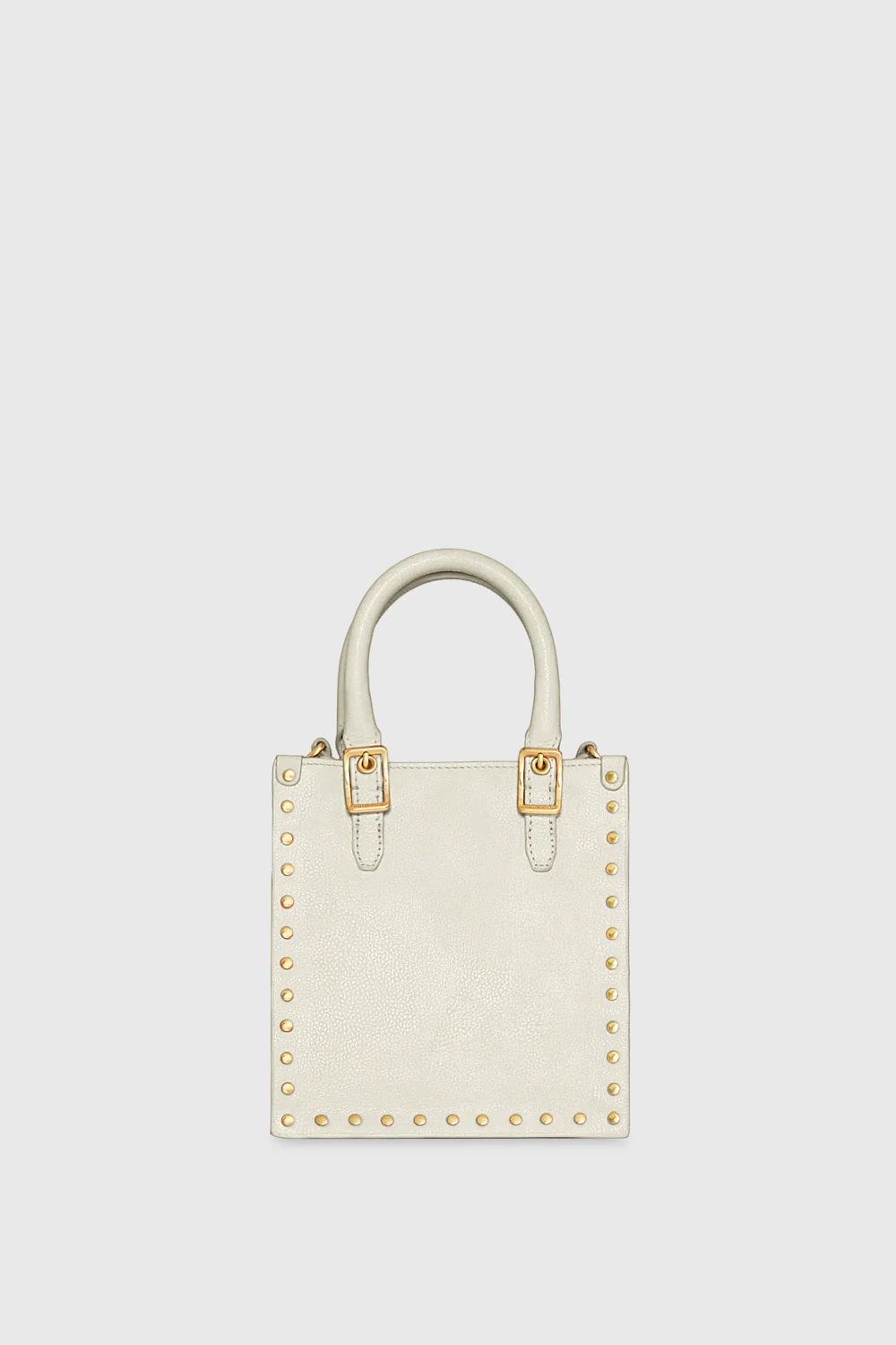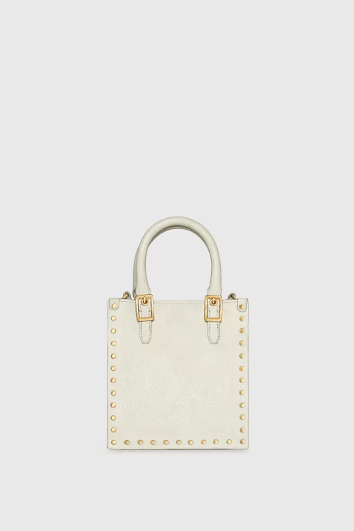 The Studded Mini Tote is a stylish and compact companion for your everyday essentials. Crafted from soft and luxurious leather, it features antique brass stud detailing along the edges for a bold, modern touch. With a detachable strap and magnetic snap closure, this tote seamlessly transitions from handheld elegance to crossbody convenience.