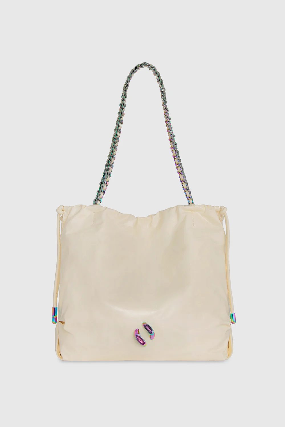Introducing the new Zero Gravity Small Tote, perfect for your everyday needs. Crafted from the most lightweight leather, this compact yet spacious style features a sleek drawstring detail with a secure snap closure and an interior back zip pocket for your essentials.