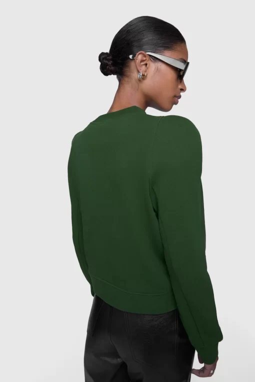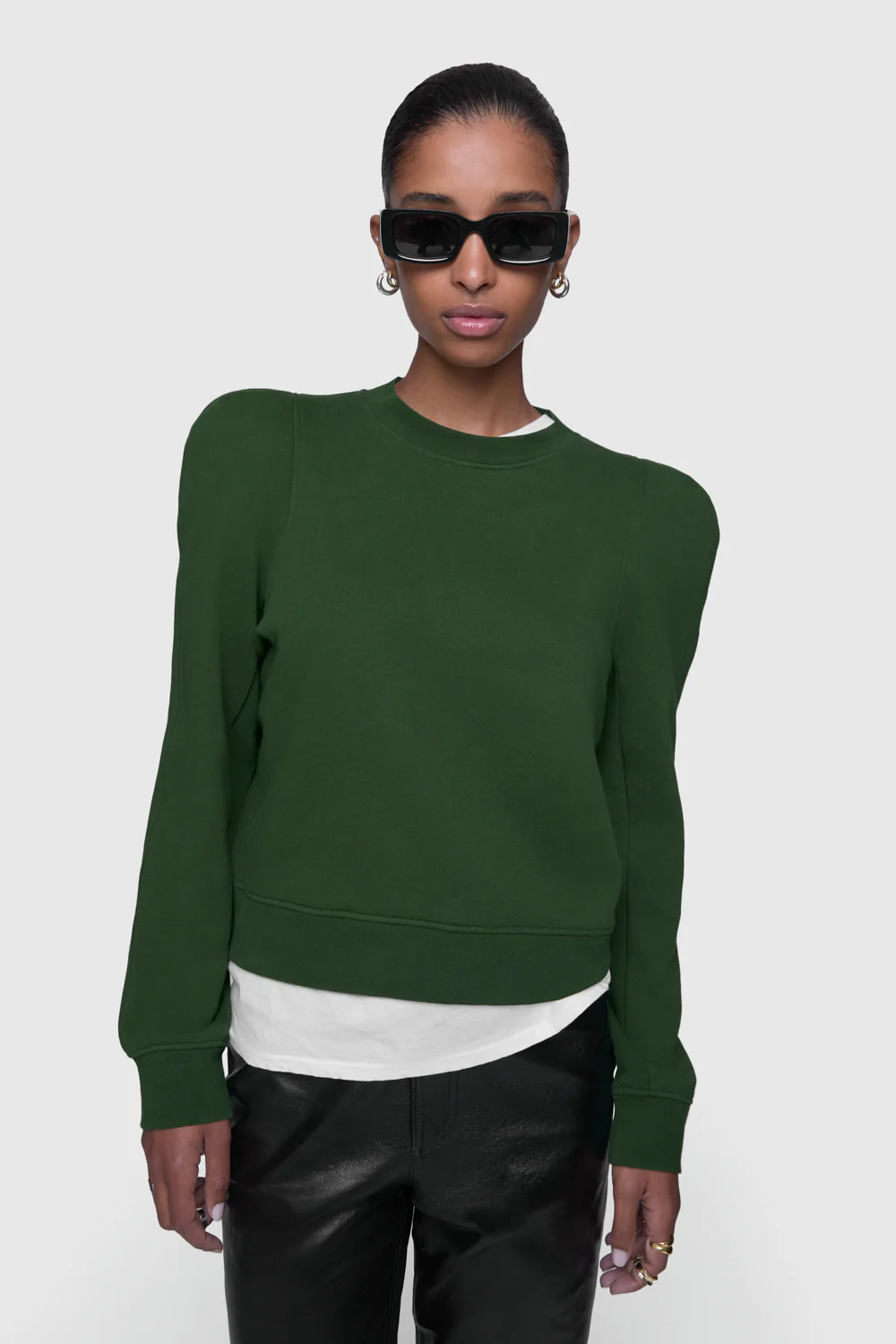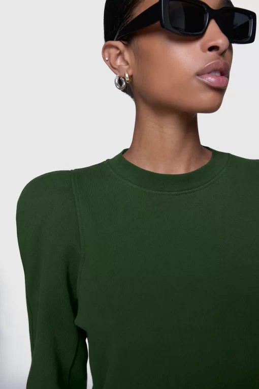 The Jade Sculpted Sweatshirt is crafted from French terry cotton for luxurious softness and breathability. This sweatshirt features sculpted shoulder pads for structure and sophistication, complemented by a classic crew neckline and ribbed bottom openings.