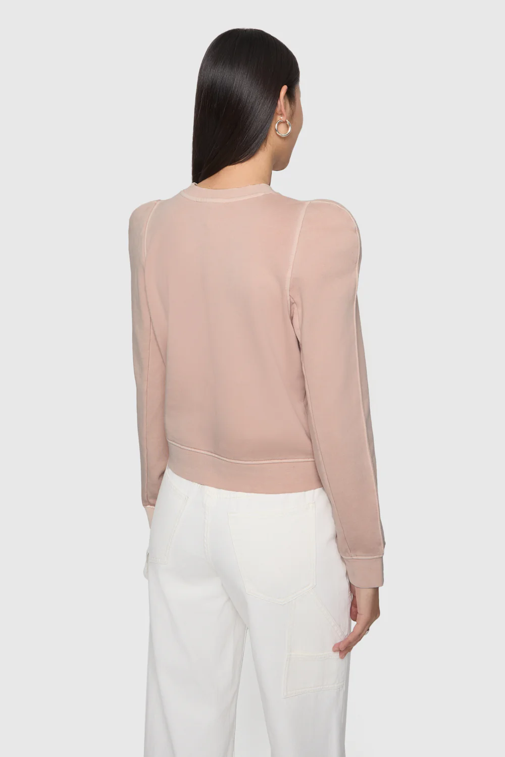 The Jade Sculpted Sweatshirt is crafted from French terry cotton for luxurious softness and breathability. This sweatshirt features sculpted shoulder pads for structure and sophistication, complemented by a classic crew neckline and ribbed bottom openings.