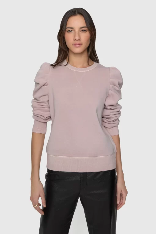 Our best-selling Janine Sweatshirt has a subtle feminine feel thanks to its low-key statement ruffled sleeves. We love wearing this casual-cool top with everything from jeans to leather skirts.