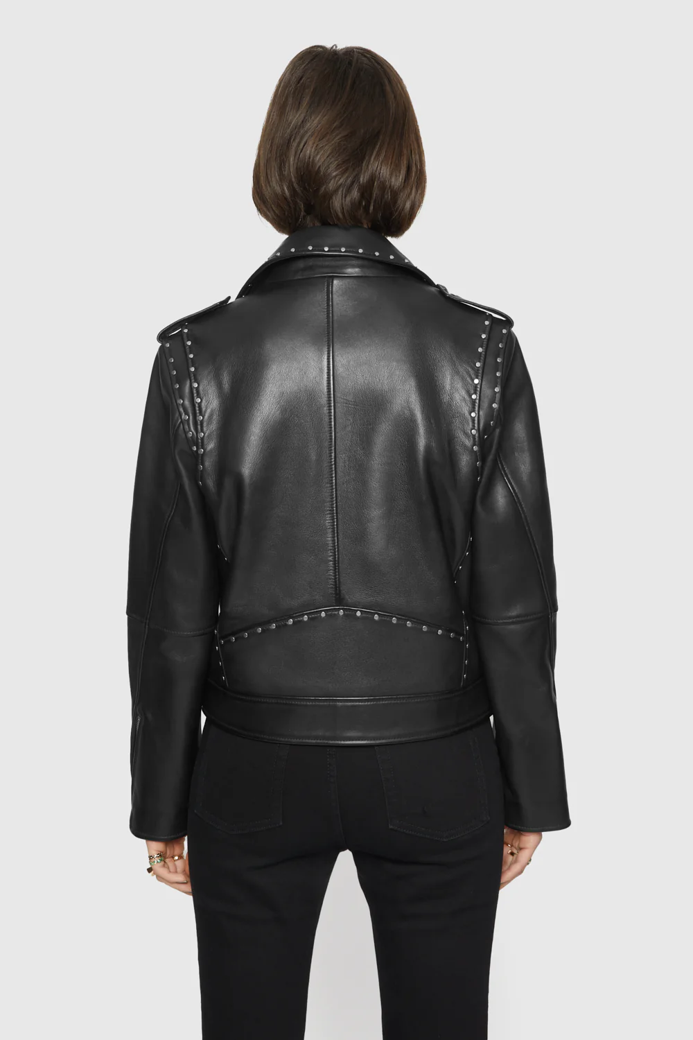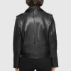 Made from supple black leather, Jett Moto is slim fitting throughout and is detailed with notch lapels, polished metal hardware, and multiple zip pockets. Throw it over your favorite flowy dress for effortless fall vibes.