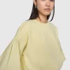 long-sleeve fit with a round neckline and contrasting poplin sleeves with elastic hems for added style and structure. This versatile piece blends casual comfort with a touch of sophistication, making it an easy go-to for both everyday wear and elevated looks.