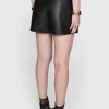 The Julia Leather Skort is a chic mini skirt featuring an exposed zipper front opening and welt pockets on either side, combining functionality with edgy style. Crafted from luxurious leather, it effortlessly elevates any ensemble.