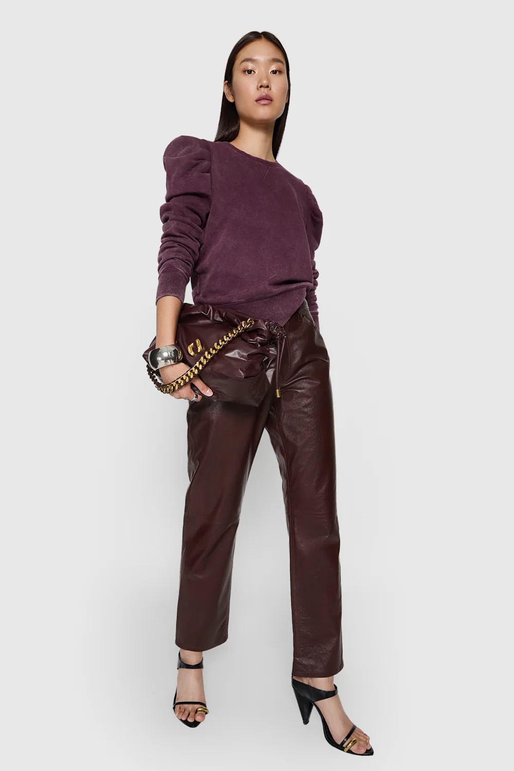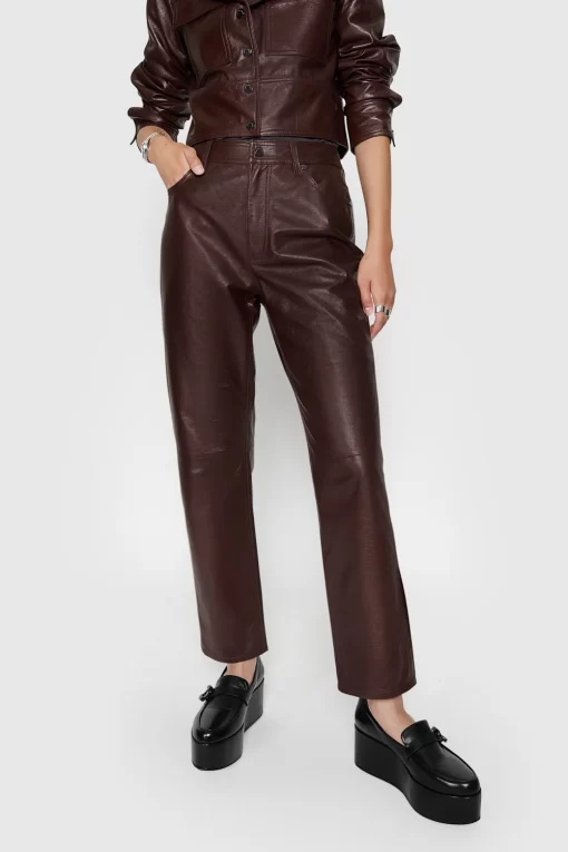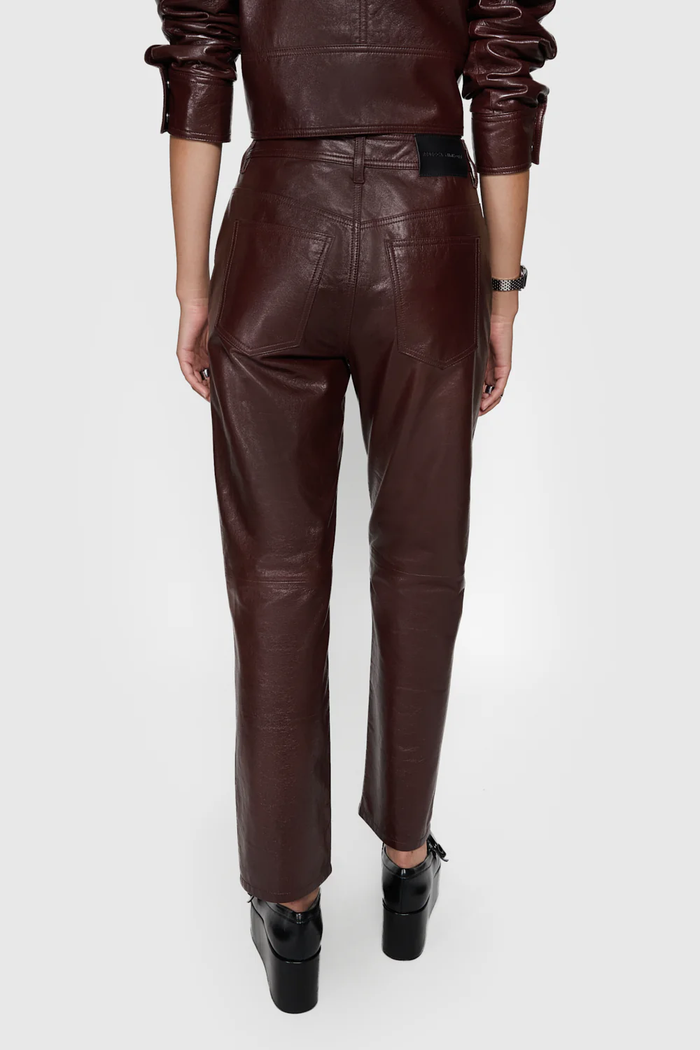 Meet the Kit Cropped Stove Pant, crafted from 100% sheep leather for a luxurious feel. With a straight leg opening and cut seams at the knee, these pants blend classic elegance with contemporary edge.