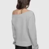 The Kora Off Shoulder Sweatshirt is a relaxed knit top that drapes off the shoulders for a laid-back look, featuring ribbed openings and a ribbed neckline for a touch of texture.