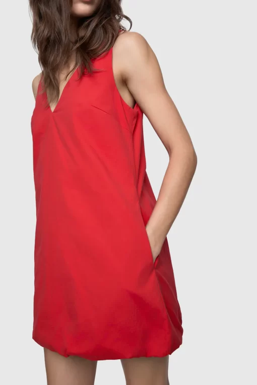 The Leia Bubble Mini is a playful mini dress with a V-neckline at both the front and back, designed with padding to create a distinctive bubble shape. With its bold, structured silhouette and feminine cut, this dress adds a fun, fashion-forward twist to any wardrobe.