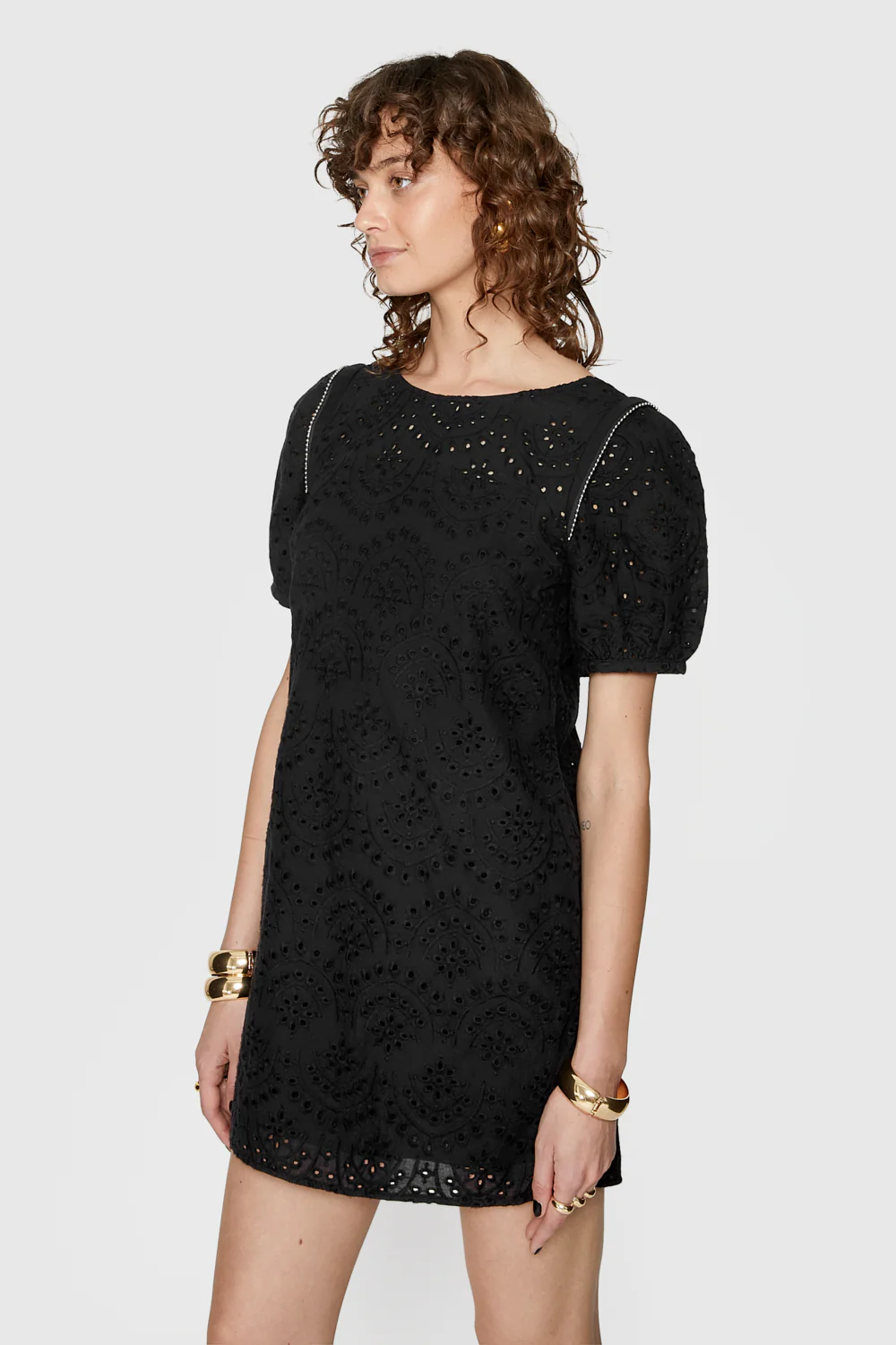 The Lincoln Dress features charming short puff sleeves and intricate eyelet detailing, adding a touch of vintage elegance to any occasion. Crafted from high-quality, breathable cotton, it ensures comfort for all-day wear. This versatile dress effortlessly combines classic charm with modern style, making it perfect for brunch dates and special celebrations.