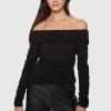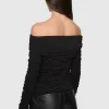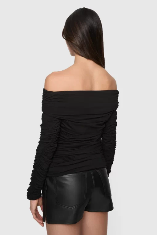 Feminine and fierce, the Maria Off Shoulder Top combines elegant ruching with a flattering, fitted design. The off-shoulder silhouette and detailed ruching across the body, sleeves, and chest create a chic, sophisticated look with just the right amount of edge for the modern, confident woman.