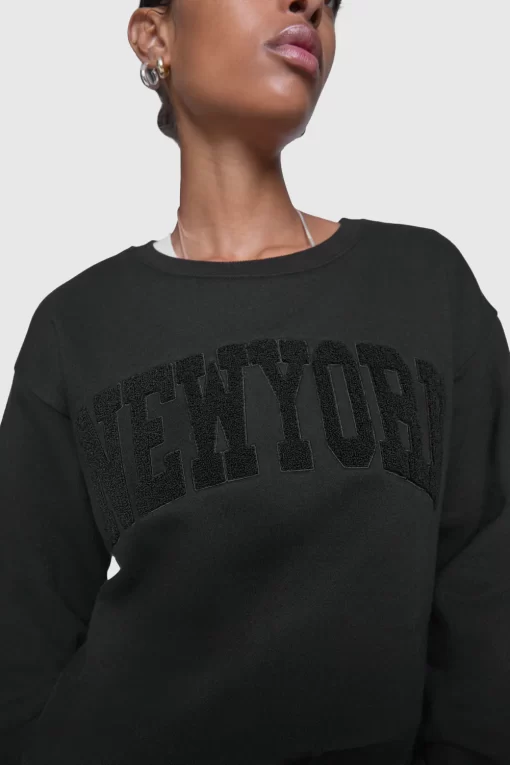 The New York Sweatshirt features an easy-fitting silhouette and a distinctive broken chain detail at the center back neck, nodding to the city’s iconic grit and style.