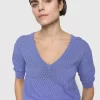 The Nova Pointelle Sweater is a short-sleeve knit with delicate pointelle detailing, featuring a flattering V-neckline and ribbed openings. Its airy texture and subtle design make it a perfect balance of refined and relaxed.