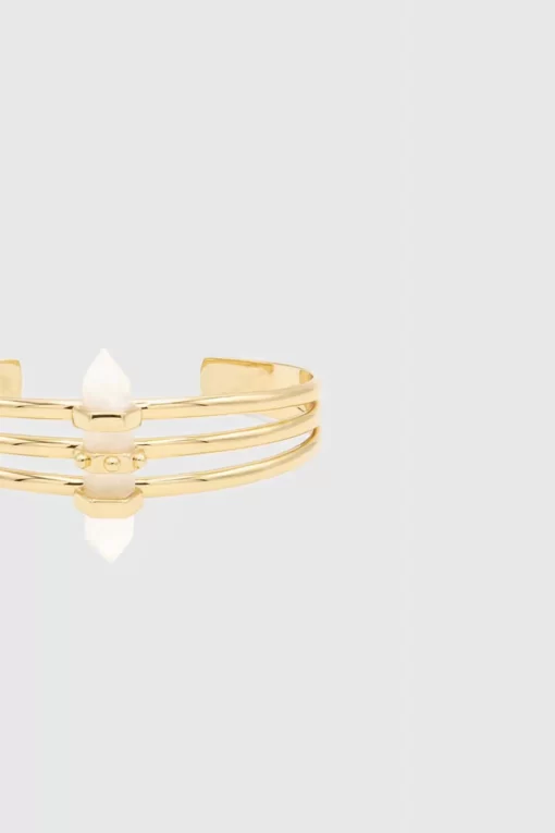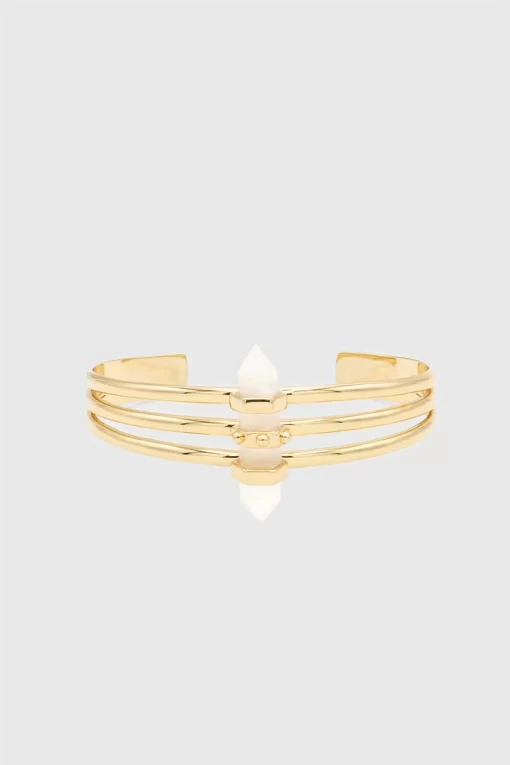 A bold bracelet with outfit-making superpowers. This polished gold cuff features a striking quartz stone in the center.