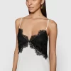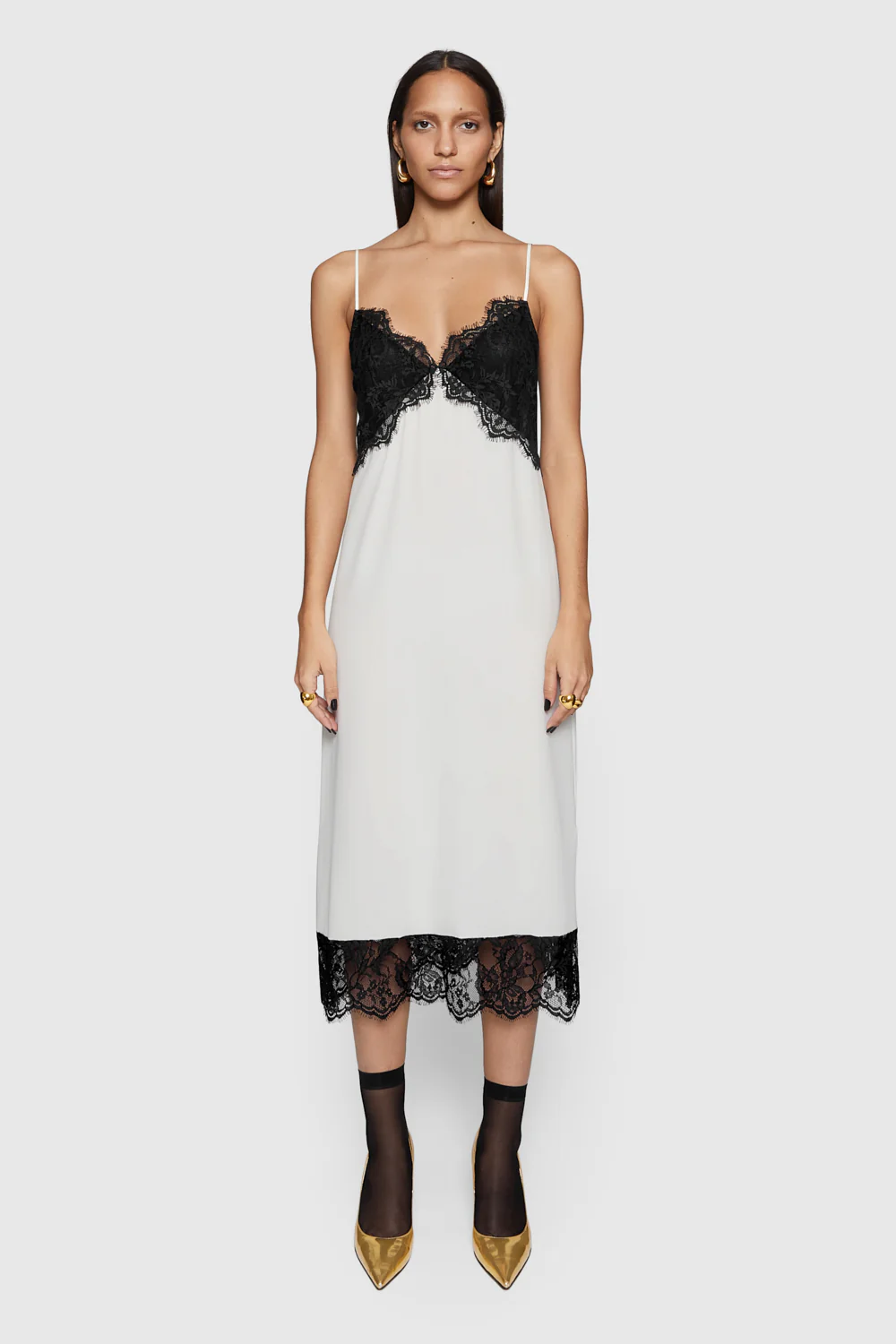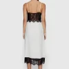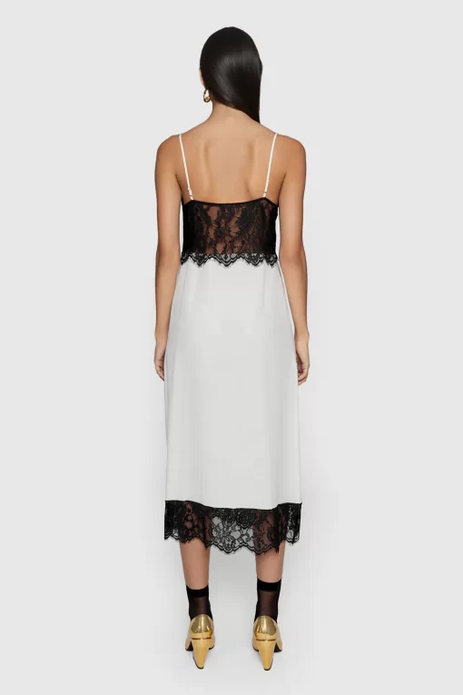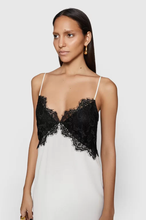 Silk lace combo maxi slip dress with lace scalloped detailing along seam