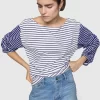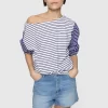 Rebecca Minkoff Women’s Ruby Stripe Pocket Tee | Small Twilight & Large White Stripe