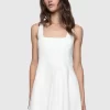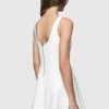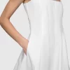 The Selena Seamed Dress is a sleeveless poplin dress with sleek paneled detailing
