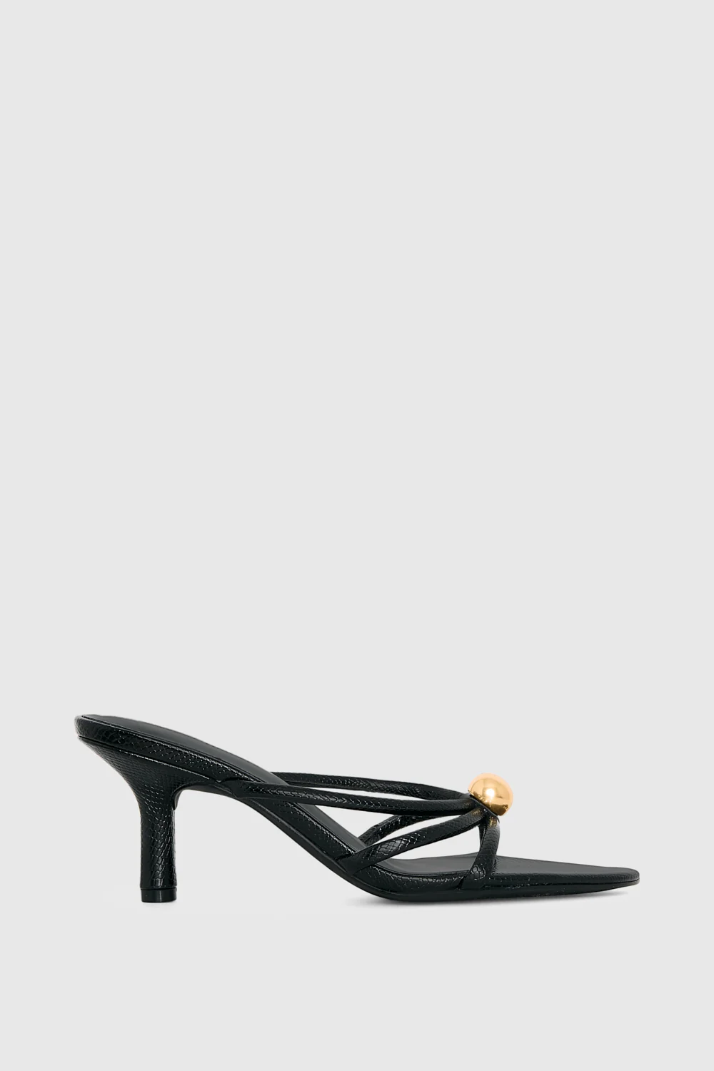 Step into modern sophistication with the Ball Kitten Heel. Designed with crisscross straps and accented by a statement gold ball detail, this sandal brings effortless glamour to any look. Perfect for pairing with tailored trousers, breezy dresses, or your favorite denim for an elevated touch.