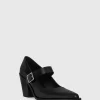 Introducing the Bowery Buckle Mary Jane — a fresh take on a timeless classic. Crafted in rich leather with a subtle texture, this shoe features a sleek pointed toe and a bold block heel for confident height without compromising comfort. The signature gold buckle strap adds a touch of vintage allure, anchoring your look with refined sophistication.