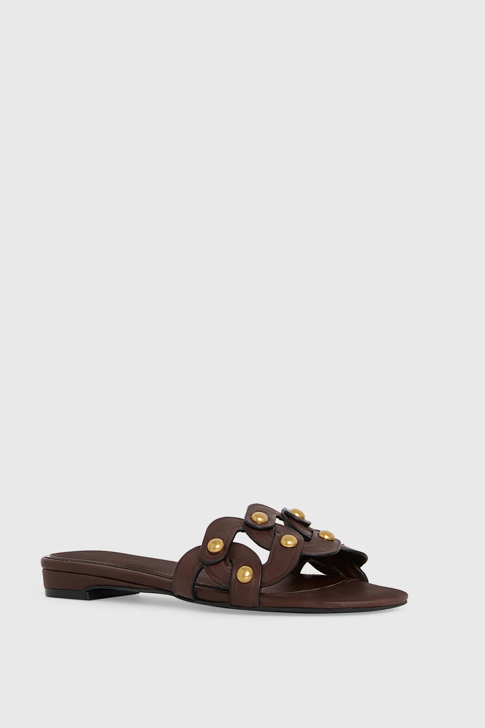 Step out in style with your new favorite sandal. This bold flat features a woven link upper with dome stud details and a soft square toe for a modern edge. A padded insole and flexible rubber sole offer all-day comfort and traction.
