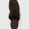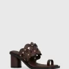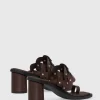 This fun sandal merges contemporary design with refined details. A bold woven upper with flat stud accents pairs seamlessly with the soft toe ring and wearable barrel heel. Padded insoles and rubber soles provide both comfort and versatility.