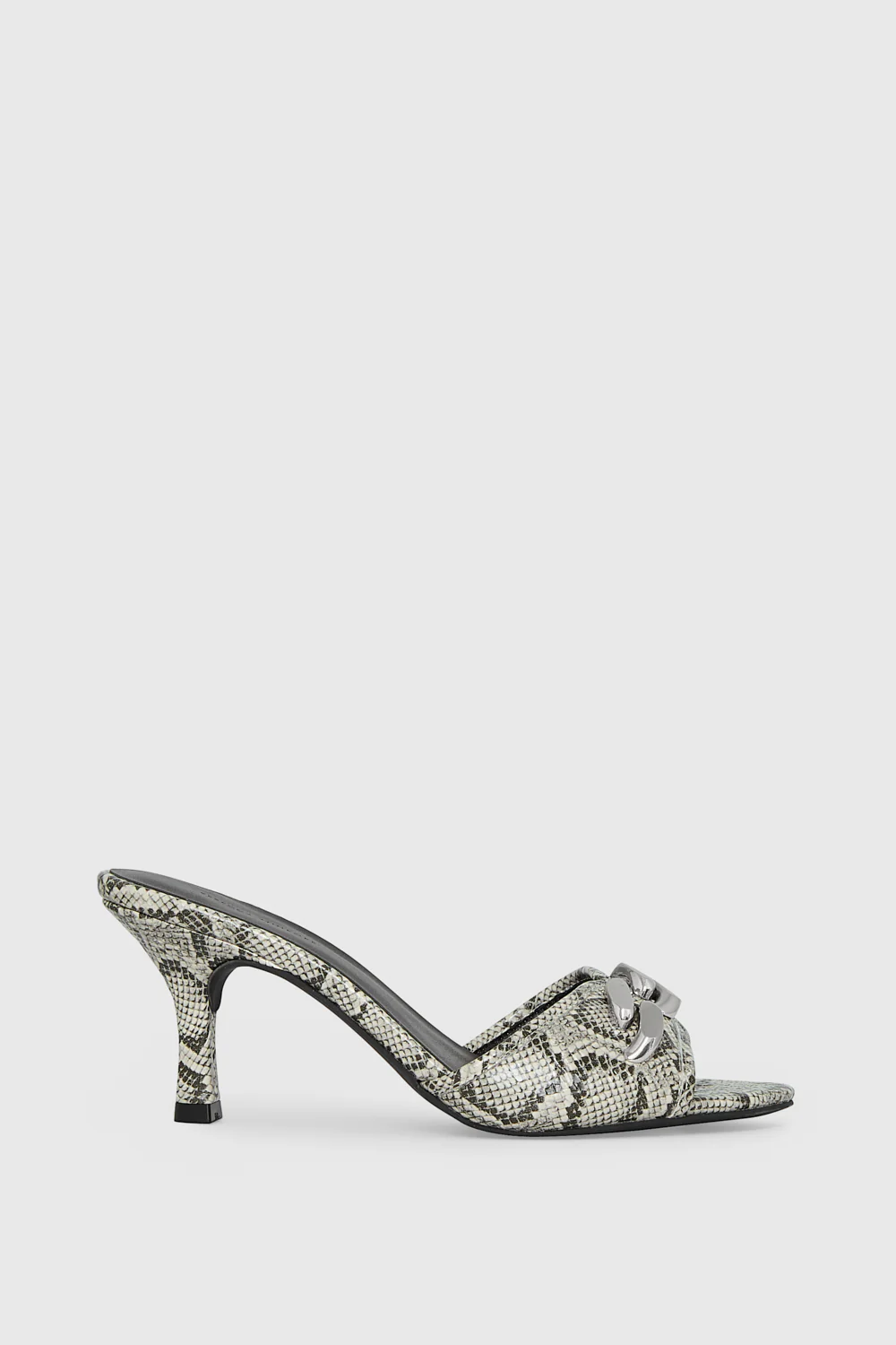 Slip into the Chain Mule, a modern slide with a striking chain inlay detail. Designed with a round toe and a sleek mid-heel, this effortless mule blends bold accents with a padded insole for all-day ease. A rubber outsole provides traction, making it perfect for any occasion.