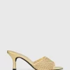 The Mesh Mule adds a touch of glam with its shimmering micro-pyramid crystal embellishments. Designed with a breathable mesh upper and a sleek round toe, this mid-heel slide delivers effortless sophistication. A padded insole offers extra comfort, while the rubber outsole ensures stability with every step.