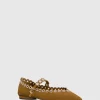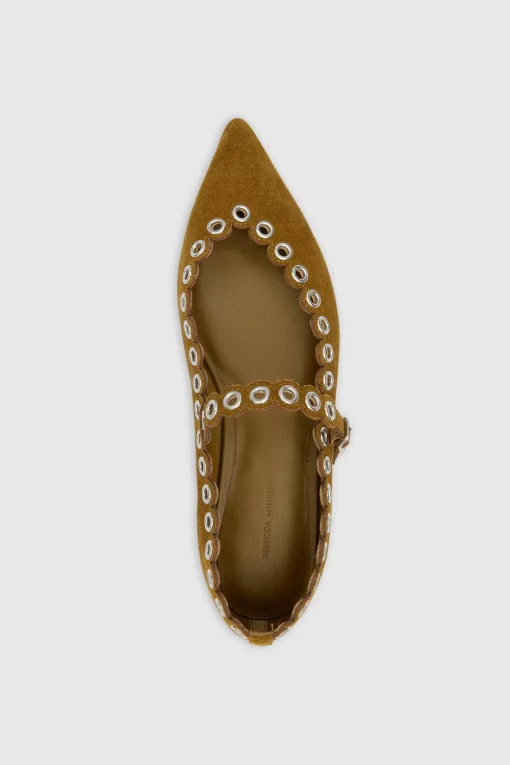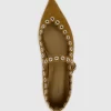 Edgy meets elegant in the Milan Grommet Mary Jane. This shoe, cut from smooth suede leather, features a pointed toe and a chic covered heel. The studded grommet accents add a bold twist, making it perfect for those who love to make a statement. With a leather sock and lining, it’s as comfortable as it is stylish.