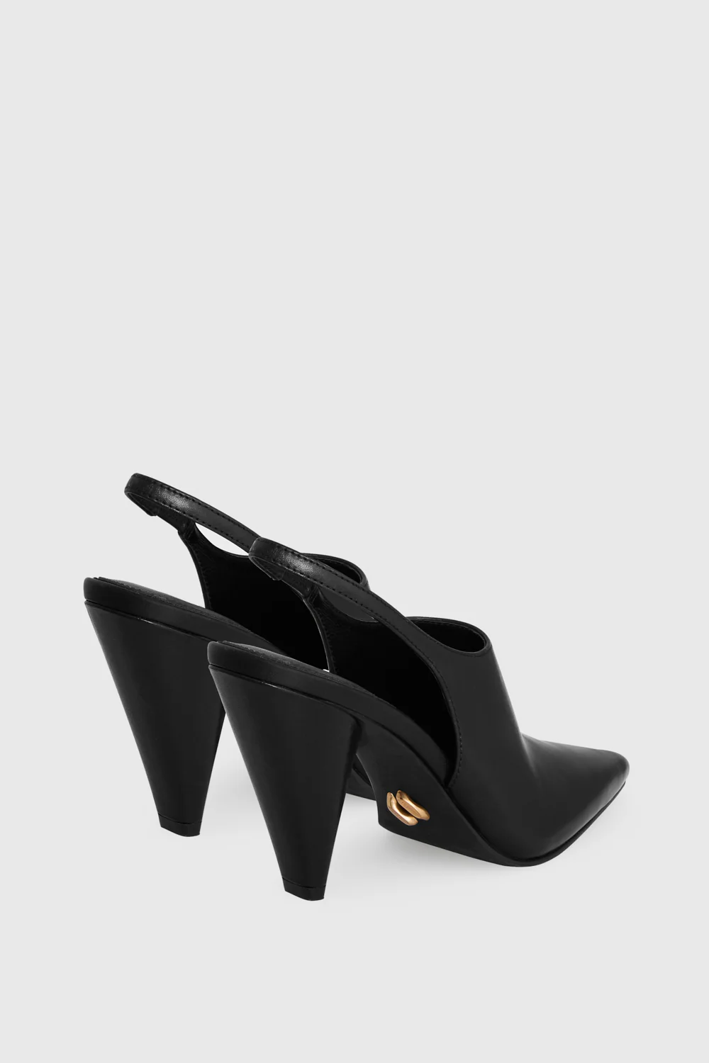 The perfect blend of sophistication and ease, this slingback mule features a sculpted cone heel and a sleek, pointed toe. The elastic-backed sling ensures a secure fit, while the padded insole keeps you comfortable from morning meetings to after-work drinks.